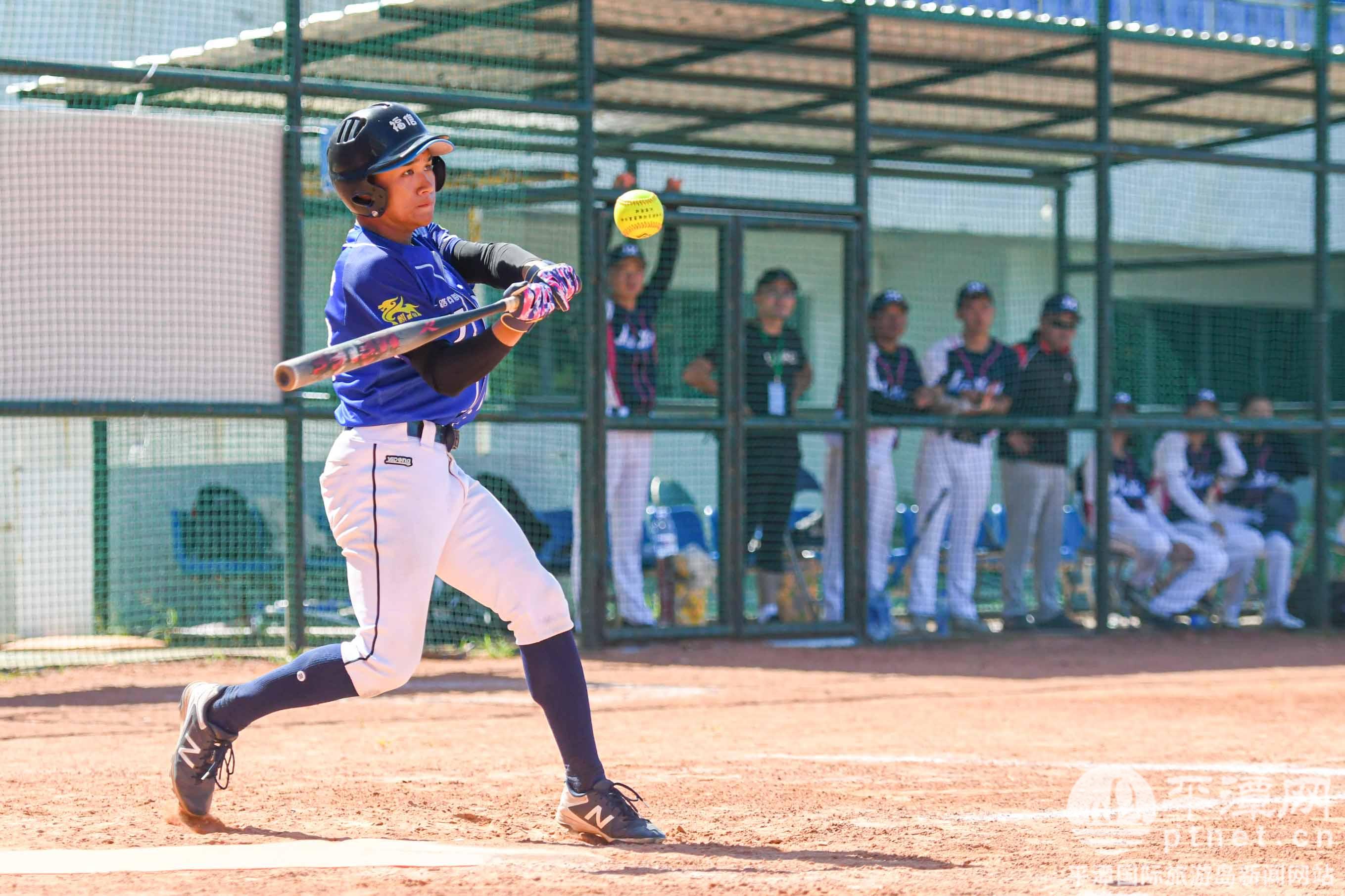 福建信息職業技術學院(平潭校區)隊員揮棒擊球。