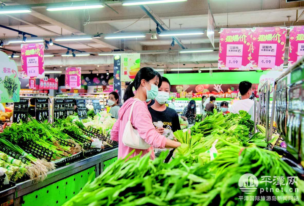在海壇東路的冠超市,市民們戴著口罩有序掃碼測溫進入超市采購生活用品,貨架上蔬果、肉蛋奶等各類生活必需品供應充足。據(jù)超市負責人錢鳳麗介紹,他們已經(jīng)做好了人員調(diào)配工作,并從區(qū)外調(diào)配大米、雞蛋、礦泉水、泡面等,確保貨量充足。
