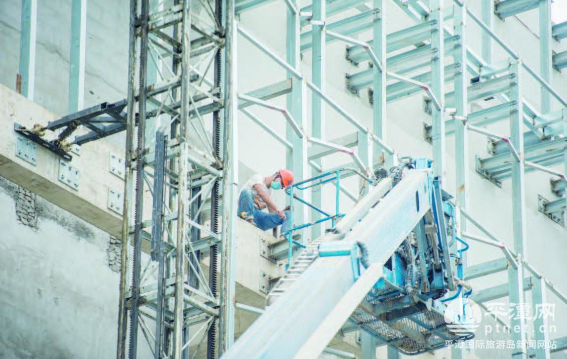 平潭吾悅廣場的工人在外立面施工。融媒體記者 林君斌 攝