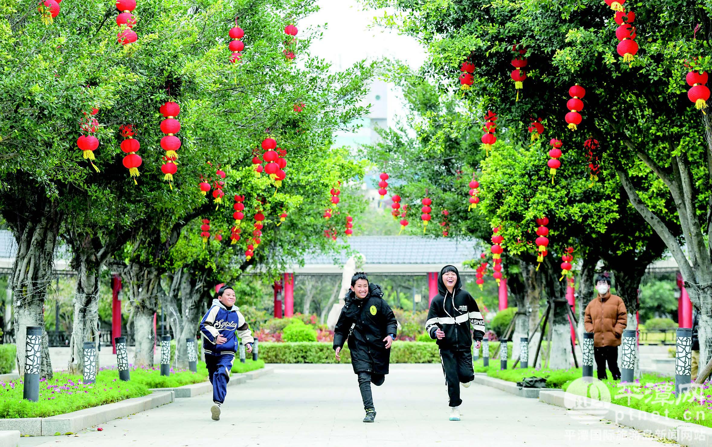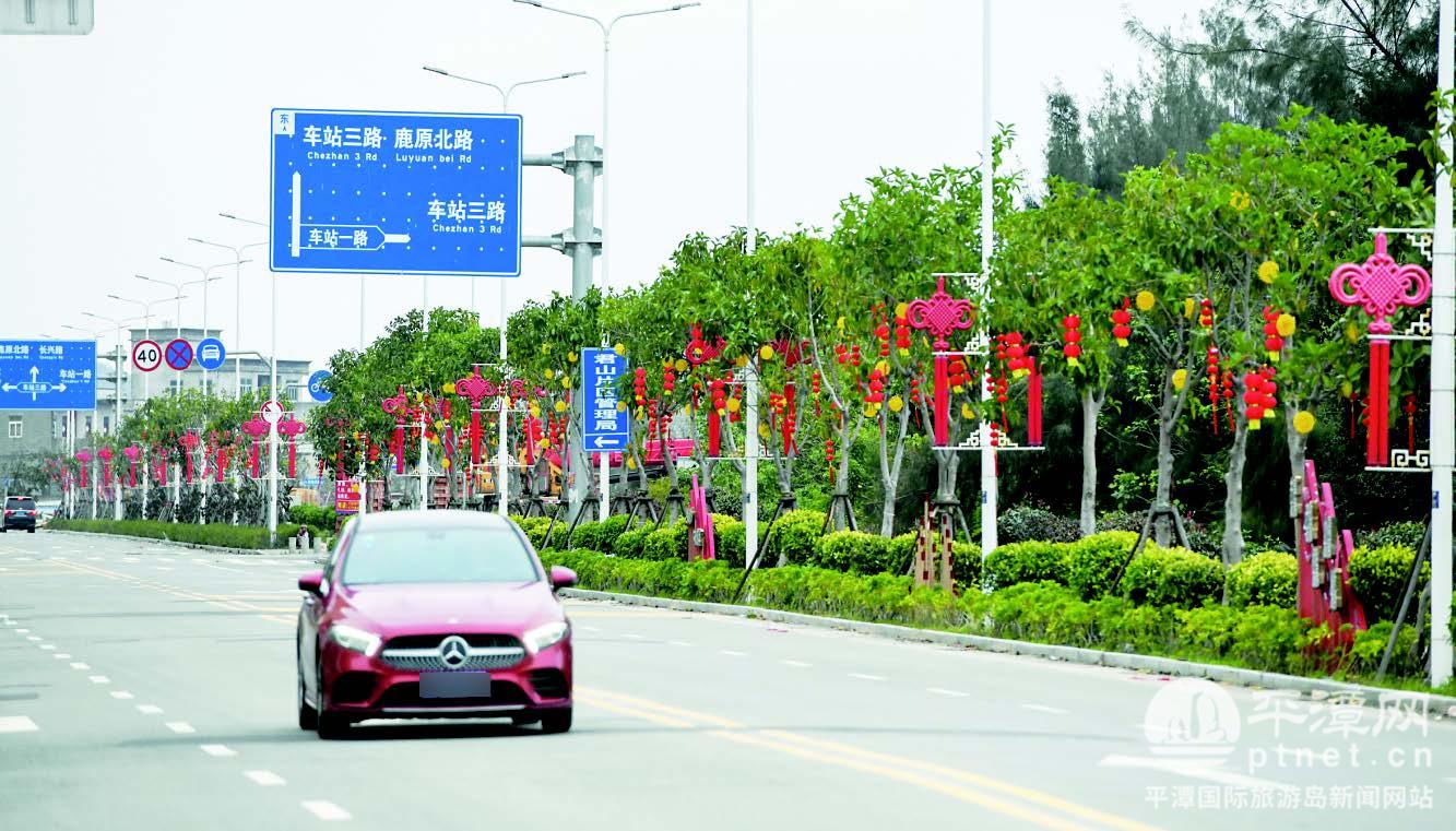 驅(qū)車行駛在中山大道上,道路兩旁的中國結(jié)格外亮眼?!敖衲晷麓悍諊鸂I造形勢(shì)更多樣、范圍更廣、氛圍更濃,不僅采用了大量的紅燈籠、道旗亮燈,還在平潭高鐵站前廣場(chǎng)外做了一座高10米的‘?!幕坝^裝置,營造濃厚節(jié)日氛圍?!本狡瑓^(qū)管理局黨群工作處工作人員吳佳佳說。