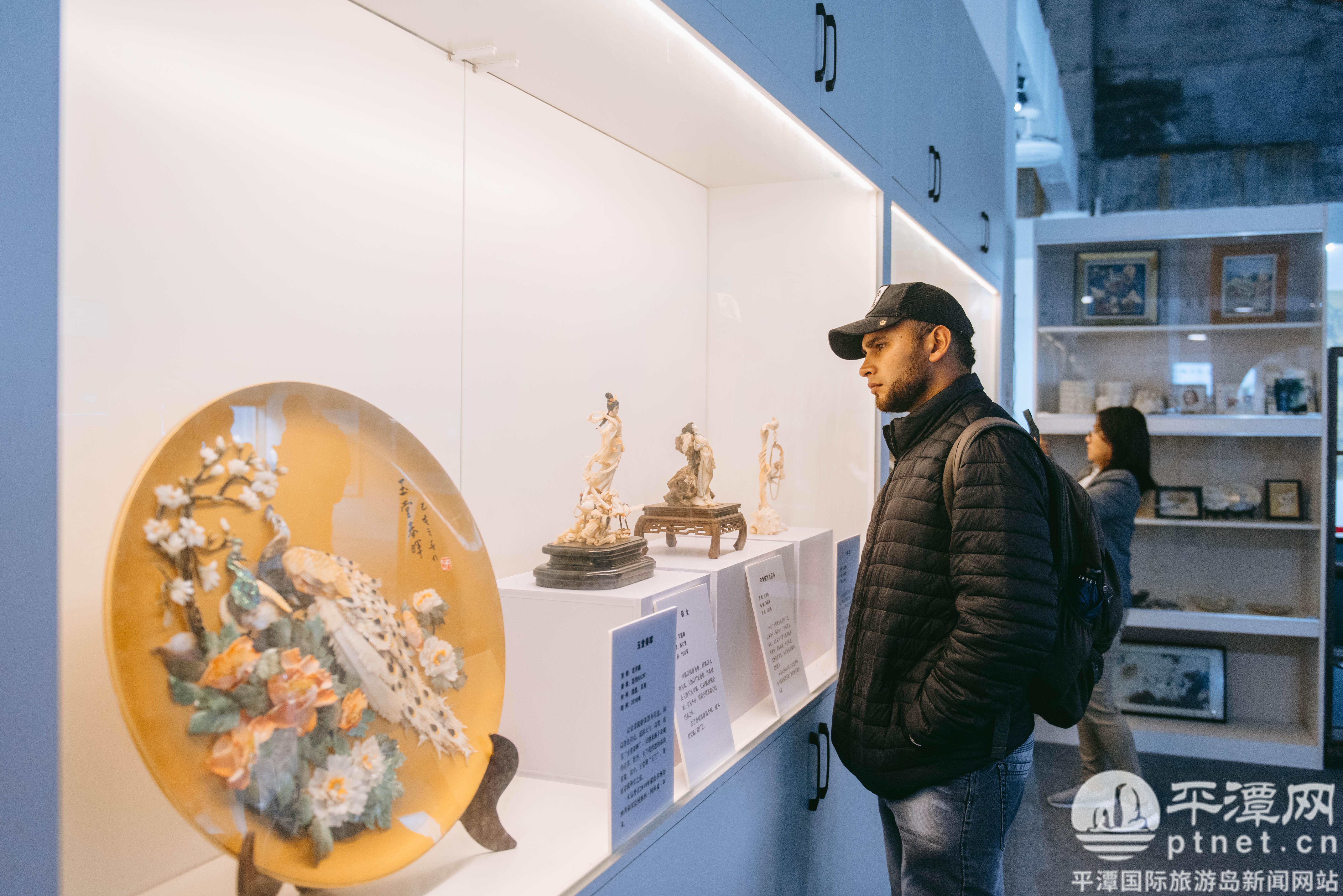 精美的貝雕工藝品吸引外國友人參觀。