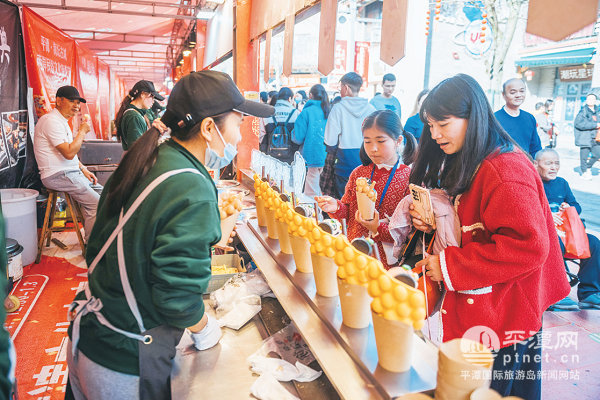 不知不覺,活動已經(jīng)過了一個小時,穿過望海樓,這里的百米美食長廊已擠滿了游客,小記者和家長也購買和品嘗全國各地的特色小吃,享受舌尖上的美味,感受濃濃的年味。老北京傳統(tǒng)手工糖、重慶酸辣粉、永定牛肉丸等成為大家的首選。