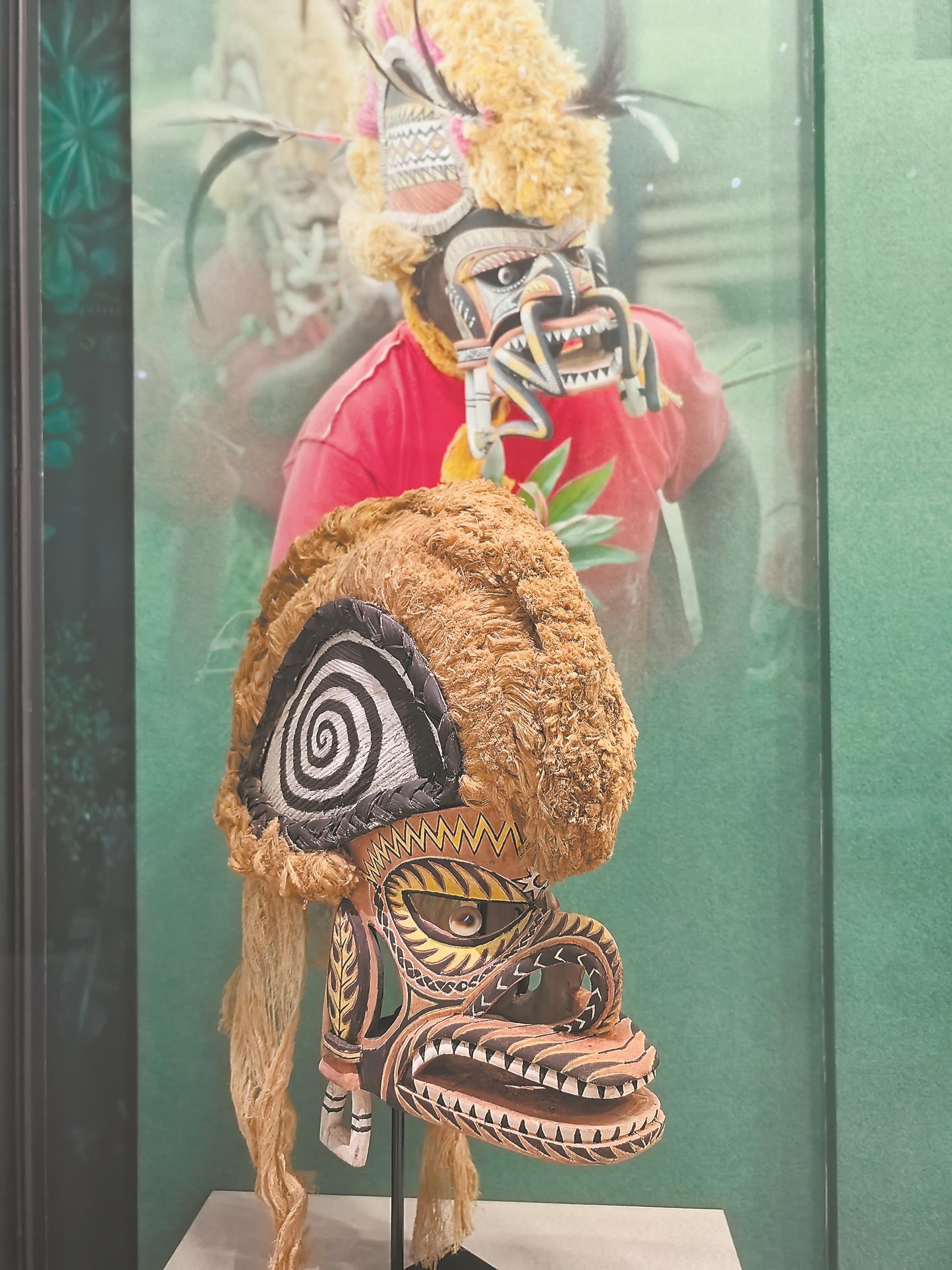 你能想象南島語族的美學是怎樣的別具一格嗎?三號展廳攜手中國文物交流中心、美國寶爾博物館共同推出南島語族主題展覽,向考古迷獻上了一份文化大餐。步入其間,來自巴布亞新幾內亞的面具藝術展率先進入視野,面具形態各異,可沿身體垂至穿戴者腰部,頗具造型感,常用于舞蹈儀式。