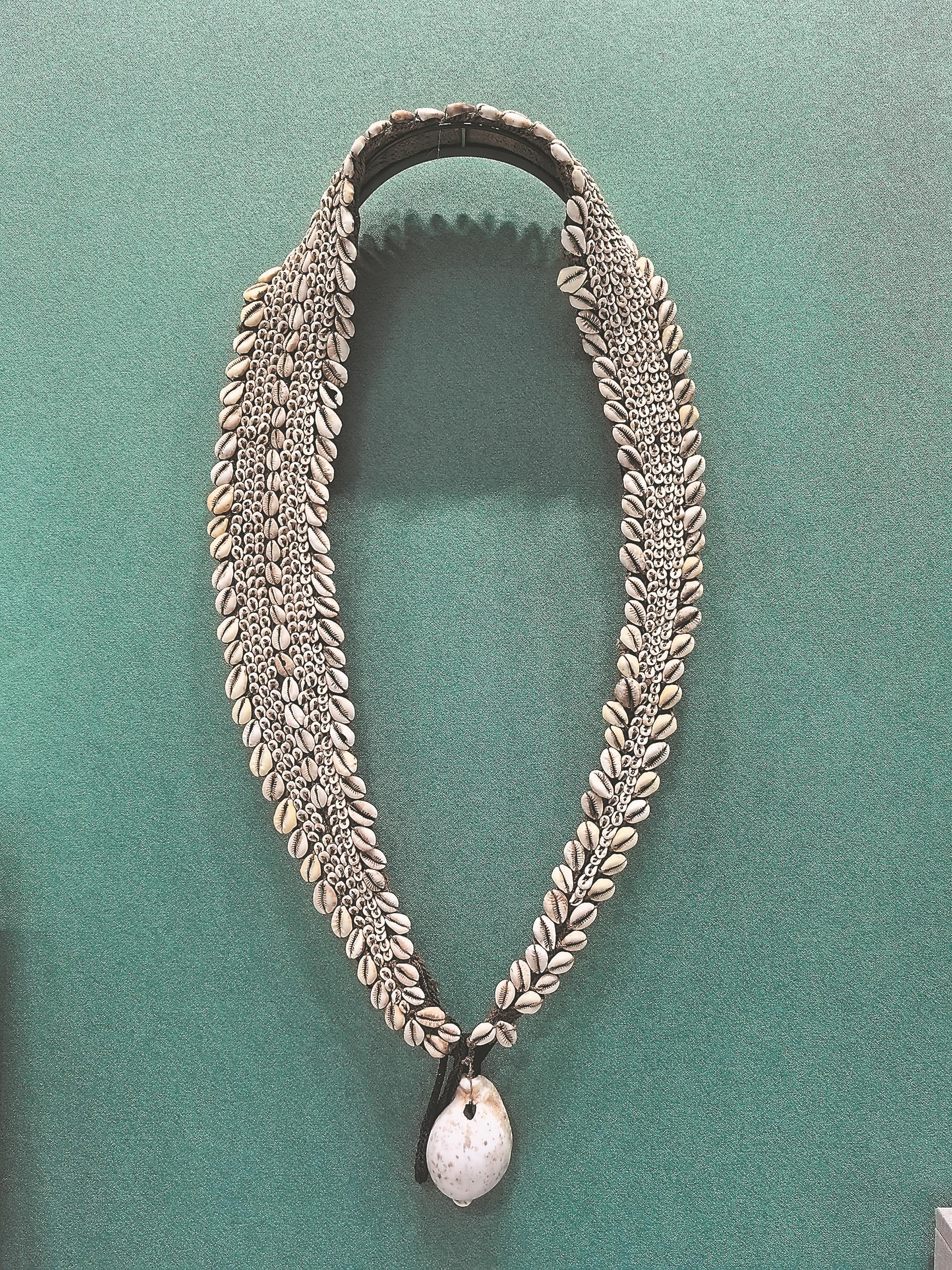展出的南島語族腰帶貨幣,由貝殼和植物纖維制成。記者郭雅瑩 攝