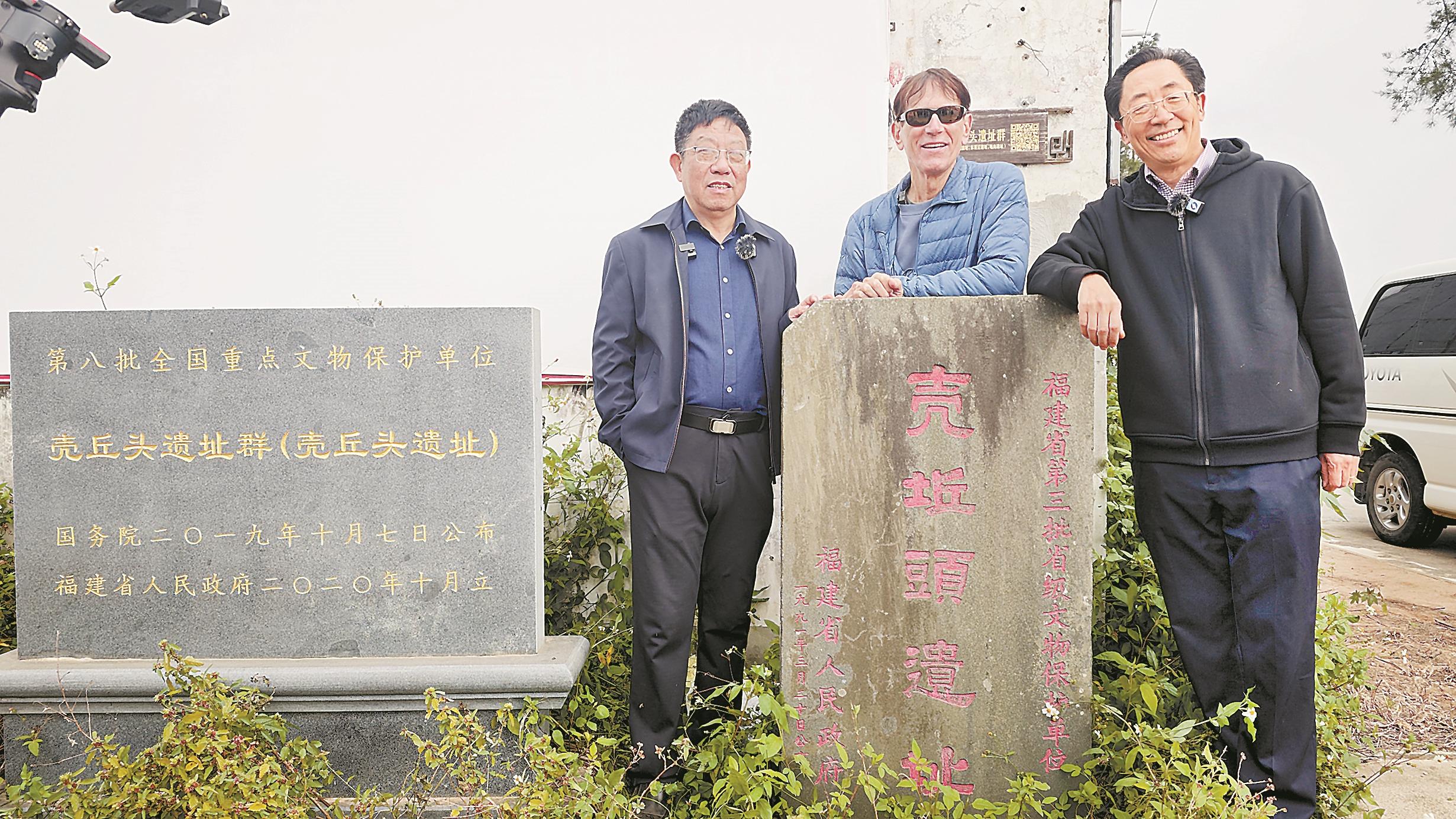 “老伙計們,來照張相吧。”站在平潭殼丘頭遺址的文物保護碑前,羅萊揮著手,招呼著焦天龍和范雪春上前,留下新的合影。20年光陰似箭,從意氣風發到兩鬢斑白,歲月在三人臉上都留下痕跡,唯一不變的是燦爛的笑容。