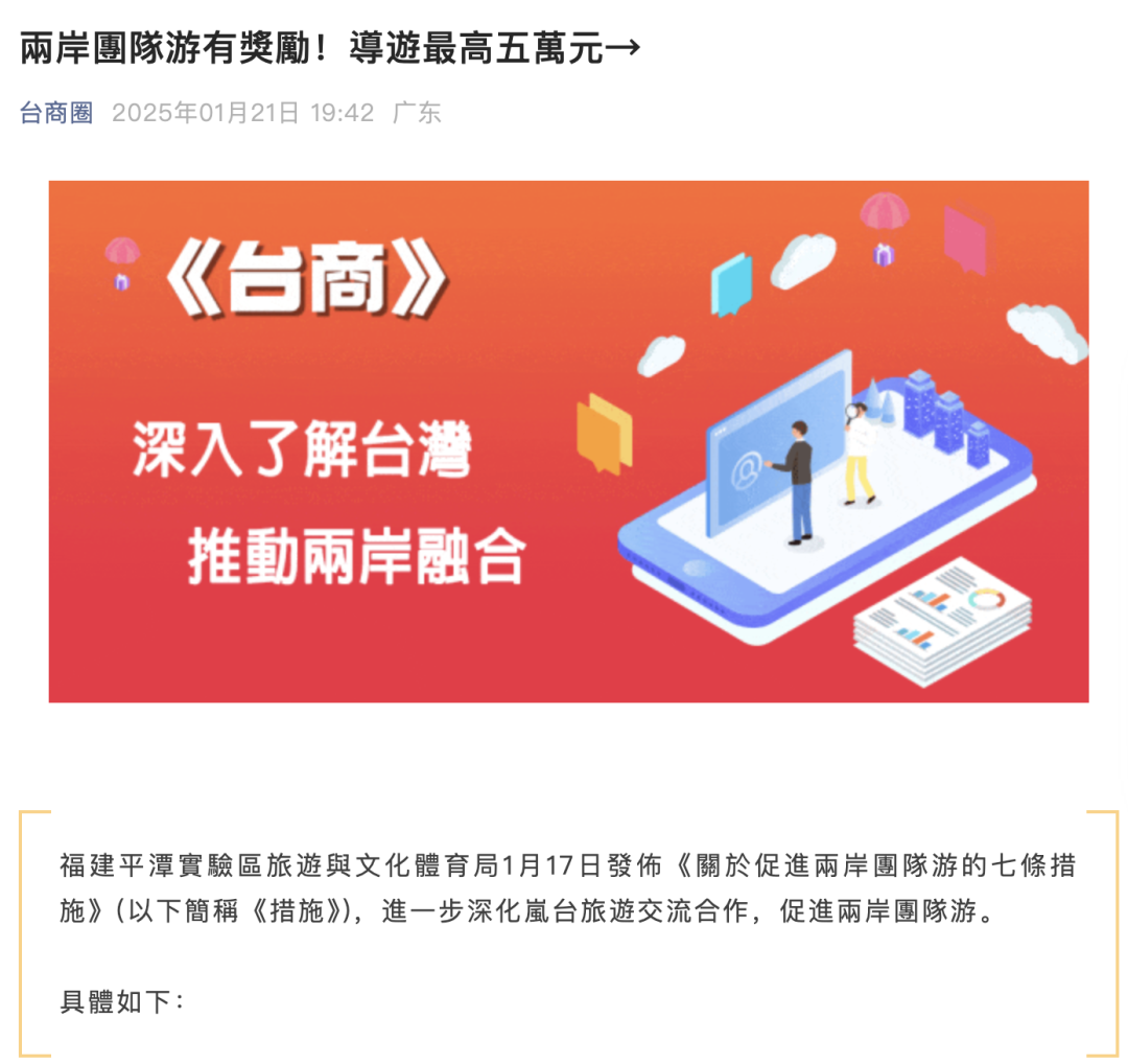 臺商U視界、旅界、京彩臺灣(北京市臺辦公眾號)等
