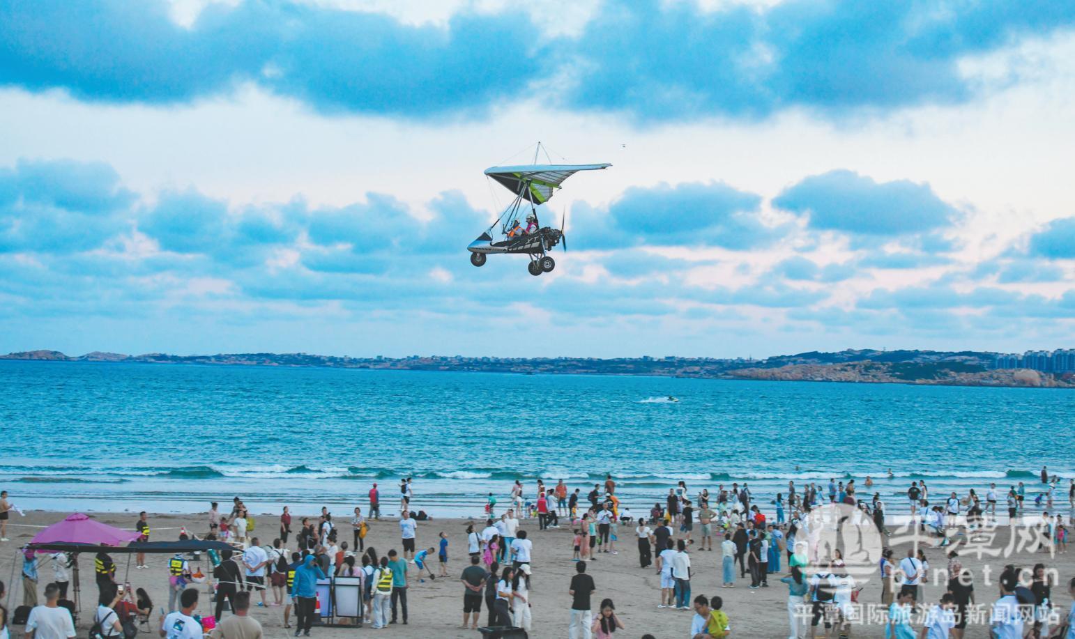 游客乘坐動(dòng)力三角翼俯瞰平潭美景。