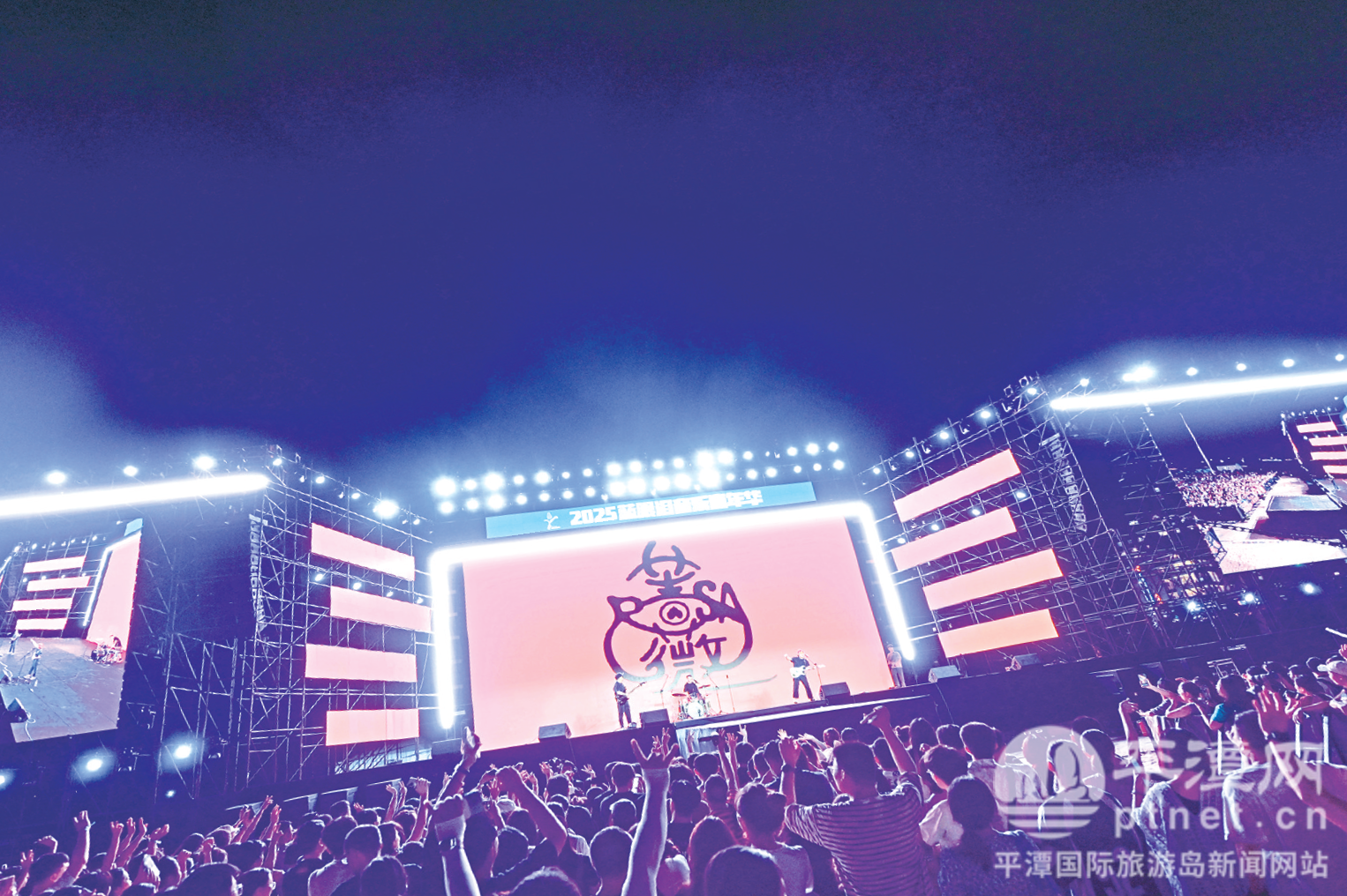 10月5日傍晚,暮色如紗,2025藍眼淚音樂嘉年華在平潭龍王頭沙灘的海風輕撫中啟幕。舞臺燈光劃破漸沉的夜色,流行、說唱等多元曲風次第綻放,與不遠處的潮聲交織成金秋最動人的交響。當《野菊花》《十七歲的雨季》的經典旋律響起,數千觀眾齊聲合唱,揮舞的熒光棒如星河傾瀉,將整片海灣點綴成流動的星海。