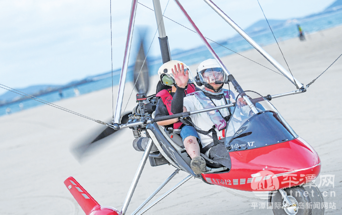在龍王頭沙灘,動力三角翼低空飛行項目成為空中觀景的亮點。隨著螺旋槳的轟鳴聲劃破長空,一架架三角翼載著游客騰空而起,翱翔于碧海藍天之間。游客俯瞰腳下蜿蜒的海岸線與層層涌動的浪花,盡享“海天一體”的視覺震撼。“從空中看平潭真的太不一樣了,海水像藍寶石一樣,海岸線彎彎曲曲,那種開闊和自由,站在地面上是感受不到的!”剛結束飛行的游客宋先生激動地說。