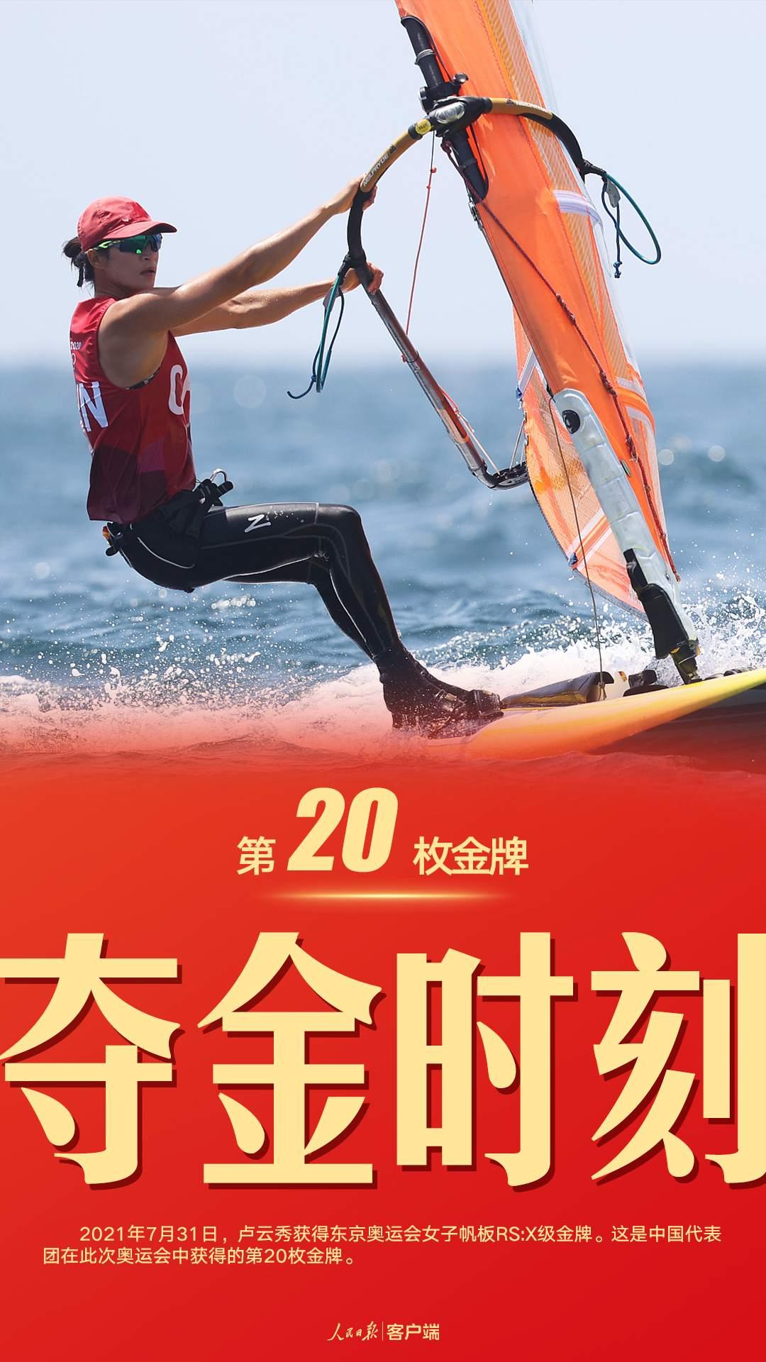 2021年7月31日,盧云秀獲得東京奧運會女子帆板RS:X級金牌。這是中國代表團在此次奧運會中獲得的第20枚金牌。