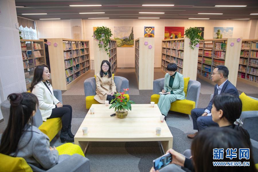 2月21日,在重慶市九龍坡區謝家灣小學,劉希婭(左四)與部分家長代表座談,收集家長們對人工智能在基礎教育領域應用的意見和建議。新華社記者 黃偉 攝