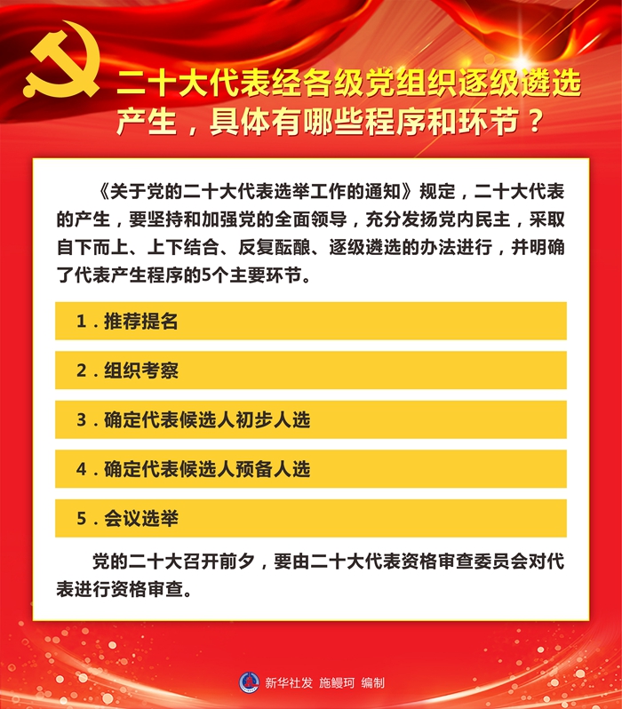 問:您前面談到,二十大代表要嚴(yán)密產(chǎn)生程序,經(jīng)各級黨組織逐級遴選產(chǎn)生,請問具體有哪些程序和環(huán)節(jié)?