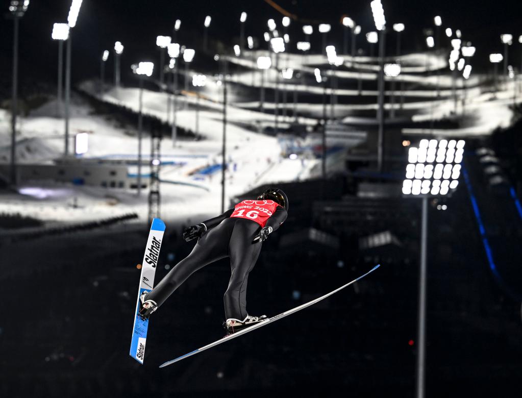 2月3日,加拿大選手亞歷山德里婭·洛蒂特在訓(xùn)練中。北京冬奧會(huì)跳臺(tái)滑雪女子標(biāo)準(zhǔn)臺(tái)官方訓(xùn)練在國(guó)家跳臺(tái)滑雪中心舉行。新華社記者馮開華攝