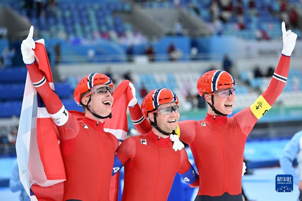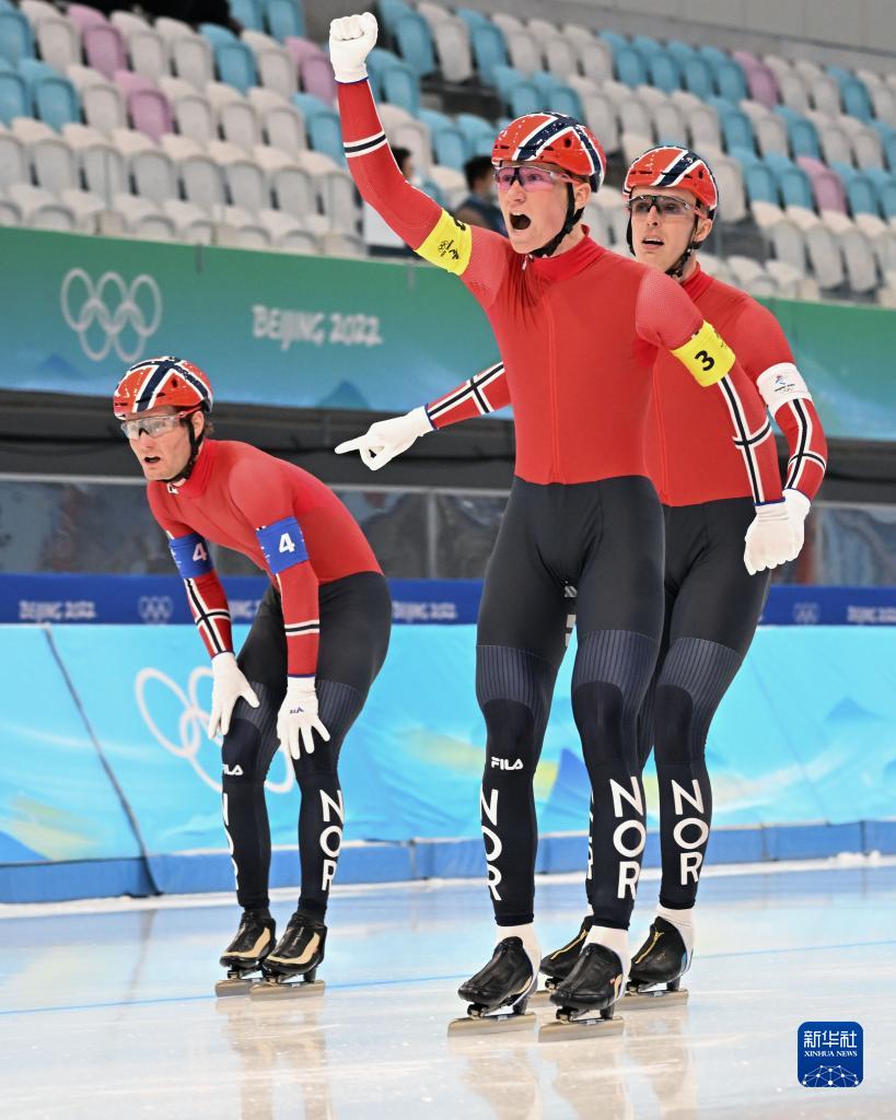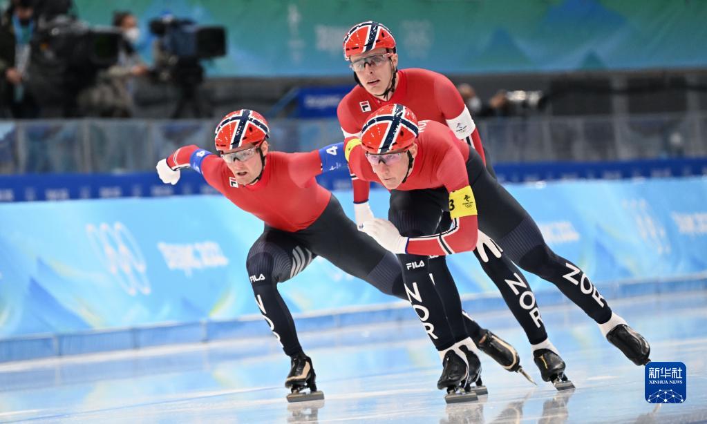 當日,北京2022年冬奧會速度滑冰男子團體追逐決賽在國家速滑館“冰絲帶”舉行,挪威隊奪得冠軍。