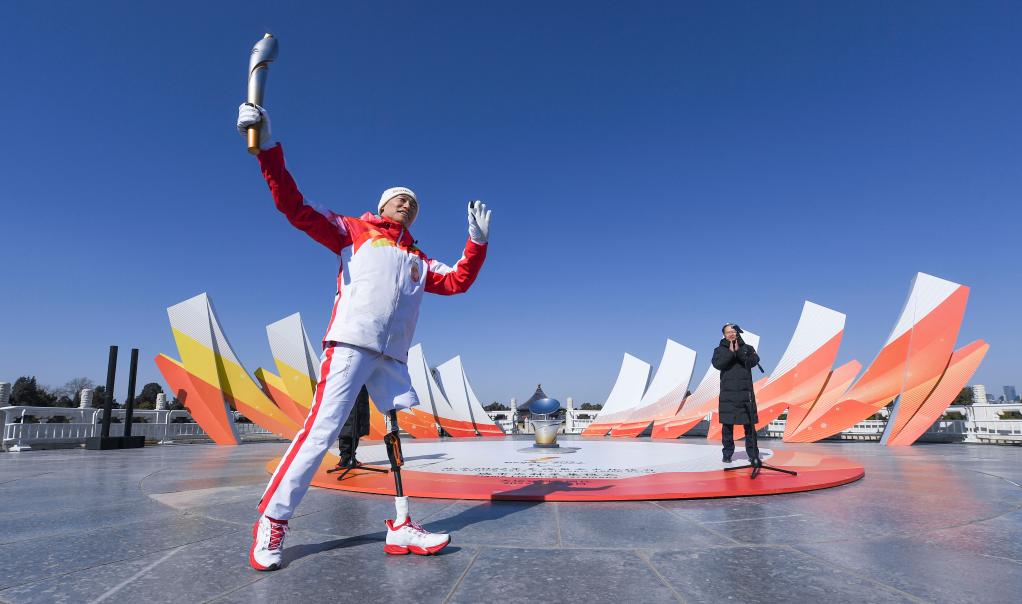 就在幾天前,侯斌作為本屆冬殘奧會(huì)的火炬手在天壇圜丘順利完成了火炬?zhèn)鬟f任務(wù),并在傳遞結(jié)束后深深親吻了手上的火炬。“我拿著沉甸甸的火炬,覺(jué)得它燃燒著的是勝利的火焰。”