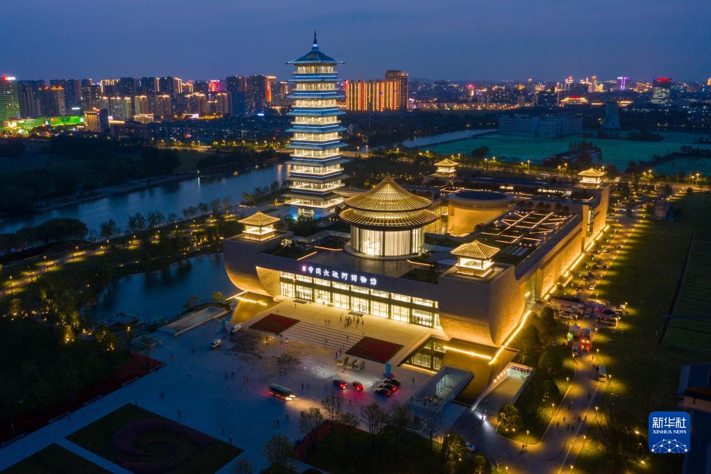 這是在江蘇省揚州市拍攝的中國大運河博物館夜景(2021年6月15日攝,無人機照片)。新華社記者 李博 攝