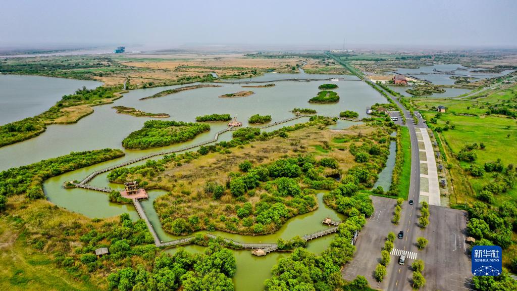 這是2021年5月13日拍攝的山東黃河三角洲國家級自然保護區景色(無人機照片)。新華社記者 郭緒雷 攝