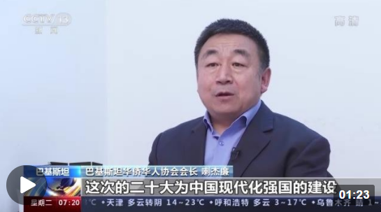 巴基斯坦華僑華人協會會長 喇杰廉:這次的二十大為中國現代化強國的建設繪制了路線圖,為我們的奮斗指明了方向和目標,在巴華人華僑充滿了信心,對中華民族的偉大復興充滿了希望。