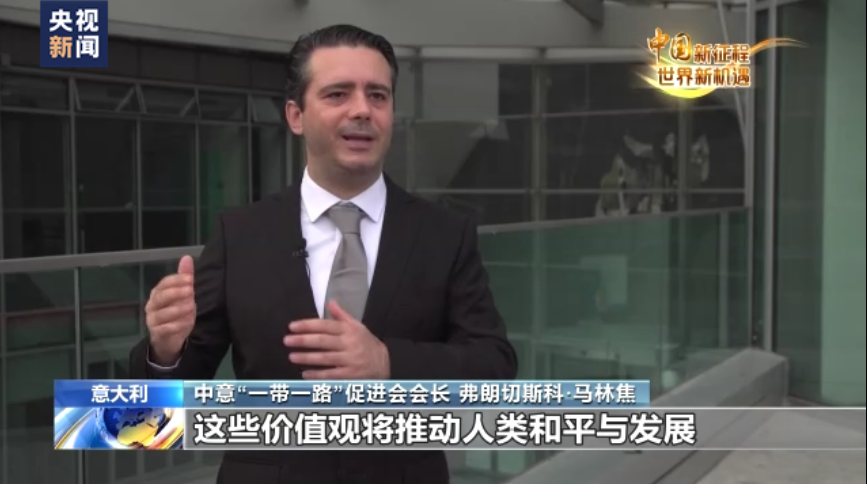 中意“一帶一路”促進會會長 弗朗切斯科·馬林焦:中國共產黨向國際社會、向各國民眾發出了強有力的信號,那就是呼吁和平,加強國際合作,這些價值觀將推動人類和平與發展。