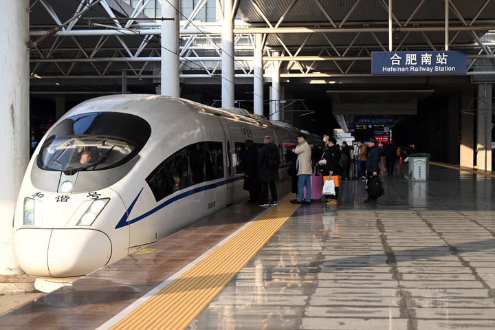 1月26日,旅客在合肥南站乘車。當(dāng)日,2024年春運(yùn)啟動。新華社記者 周牧 攝
