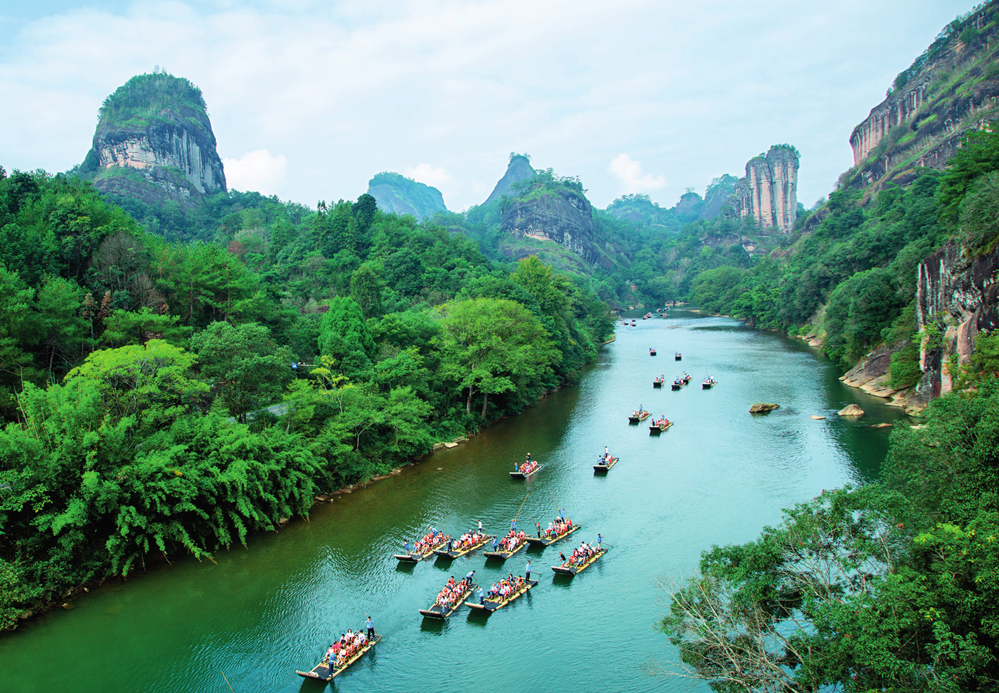 游客在福建省武夷山國(guó)家公園九曲溪乘船游覽(2023 年 10 月 3 日攝) 陳穎攝 / 《瞭望》新聞周刊