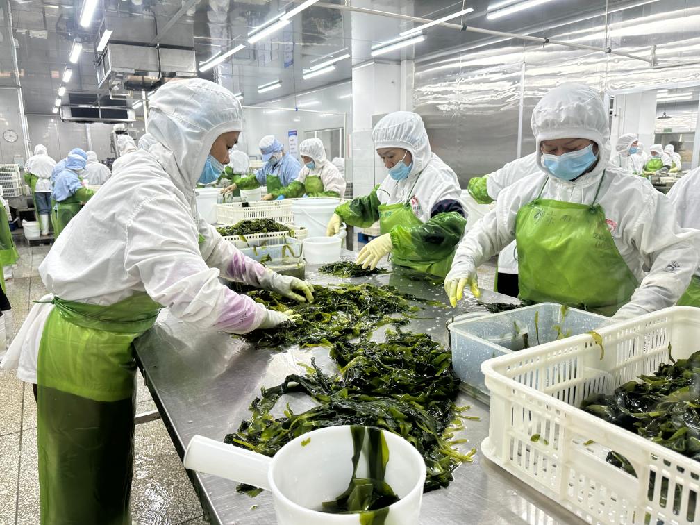 在福建省連江縣的福建億達(dá)食品有限公司,工人在分揀海帶。新華社記者 龐夢(mèng)霞 攝