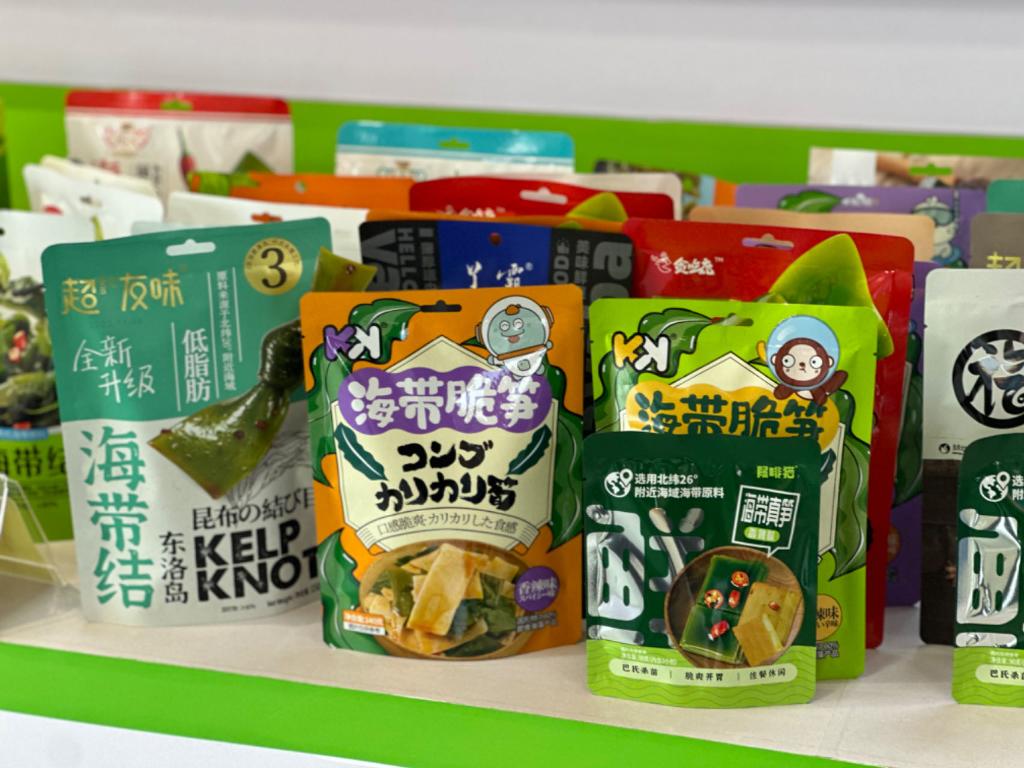 圖為福建省連江縣一家海帶加工企業(yè)展廳里擺放的海帶即食產(chǎn)品。 新華社記者 龐夢(mèng)霞 攝