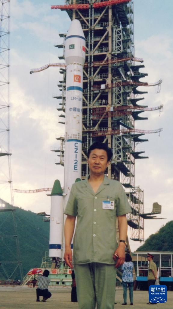 王永志在長征二號捆綁式運載火箭發射前留影。新華社發(資料照片)