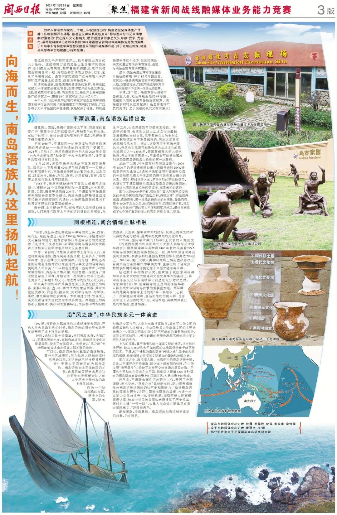“我在福建工作期間就了解到,廣泛分布于太平洋島國的南島語族,就是起源于福建。特別是福建平潭這個地方,當地的殼丘頭文化遺址有很多考古發現,是國際南島語族考古研究基地。”