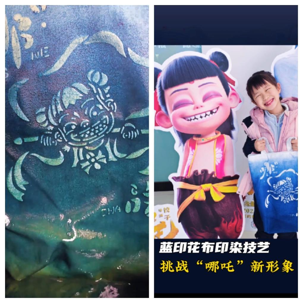 江蘇南通藍(lán)印花布博物館館長吳靈姝在分享“哪吒”帆布包制作過程的視頻中表示,藍(lán)印花布中融入“哪吒”這樣的神話角色,既是對(duì)紋樣題材的突破,也是對(duì)技藝表現(xiàn)力的挑戰(zhàn),這種創(chuàng)新是用現(xiàn)代設(shè)計(jì)的思維激活傳統(tǒng)技藝,讓更多人發(fā)現(xiàn)藍(lán)印花布不僅是老手藝,更是“活藝術(shù)”。