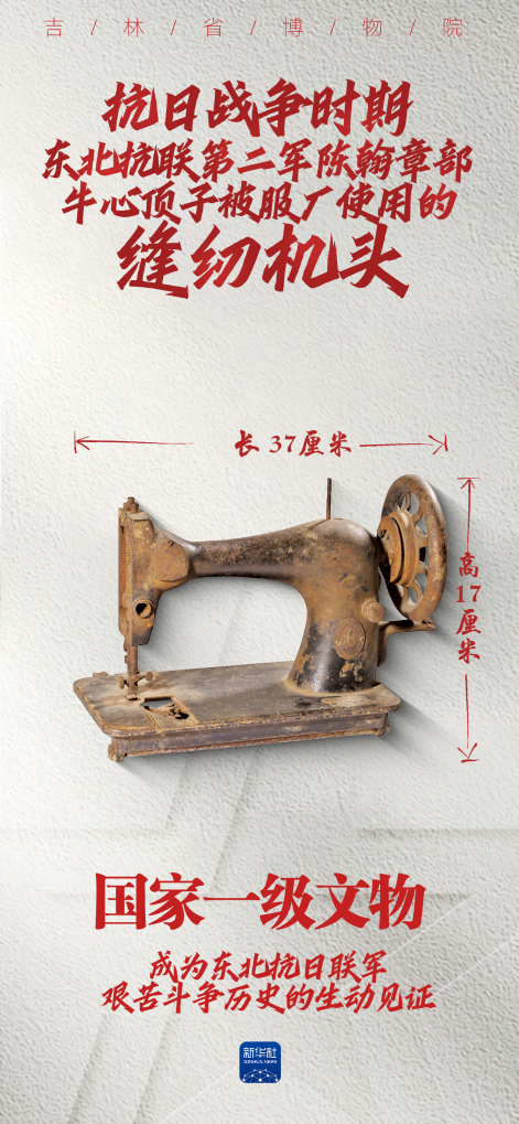 轉(zhuǎn)移時,這臺縫紉機(jī)頭未被敵人發(fā)現(xiàn)而幸得遺留下來。如今,它成為東北抗日聯(lián)軍艱苦斗爭歷史的生動見證。