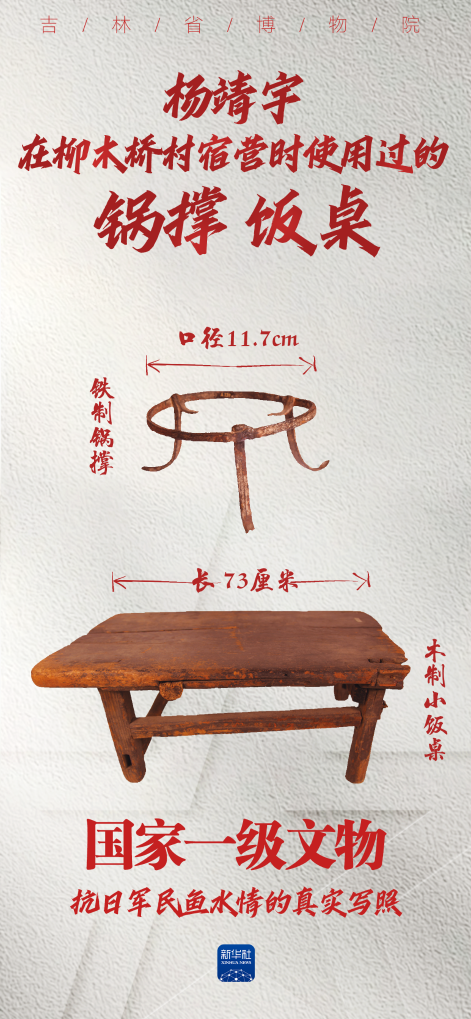 1938年,楊靖宇帶領(lǐng)部隊在柳木橋山區(qū)進(jìn)行抗日活動時,他的通訊員向當(dāng)?shù)卮迕駟未竽锝枇诉@些生活用具。部隊轉(zhuǎn)移時,把物件歸還給單大娘。后來日偽軍得知此事,氣急敗壞地?zé)龤Я肆緲虼宓姆课荩珬罹赣钤褂眠^的這幾個物件卻被搶救保存下來。它們不僅記錄了抗聯(lián)將士的戰(zhàn)斗歷程,也展現(xiàn)了東北民眾對抗聯(lián)的支持與軍民魚水情深。