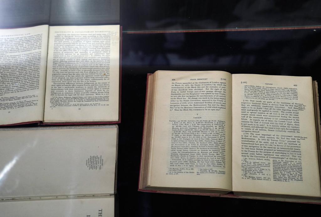 2025年8月1日在梅汝璈故居拍攝的梅汝璈在東京審判中用過(guò)的國(guó)際法專(zhuān)業(yè)工具書(shū)。