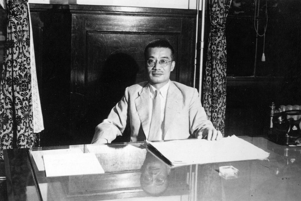 東京審判時(shí)期,梅汝璈在辦公室留影(資料照片)。