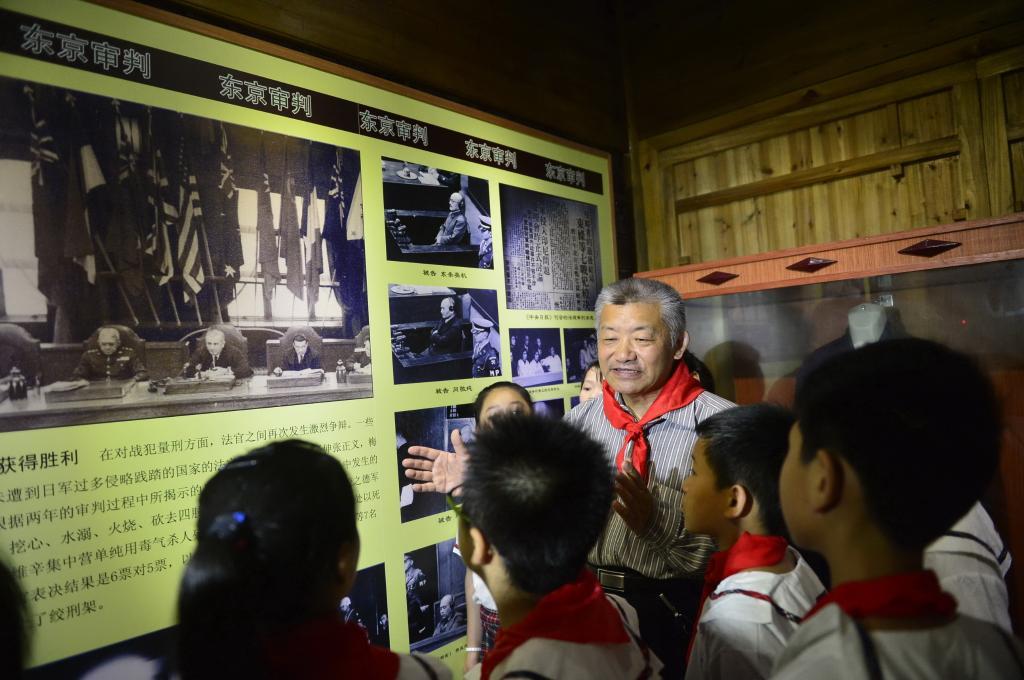 2015年8月12日,梅小璈在梅汝璈故居為前來(lái)參觀的學(xué)生介紹東京審判相關(guān)故事。新華社記者 周密 攝