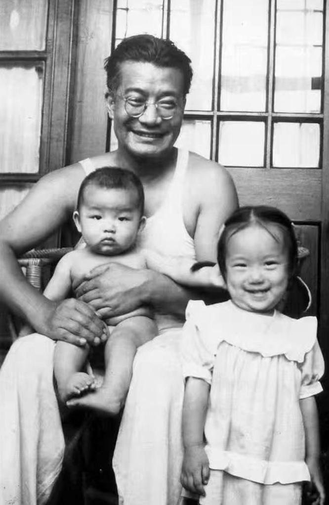 20世紀(jì)50年代,梅汝璈與兒子梅小璈(前左)、女兒梅小侃(前右)合影(資料照片)。