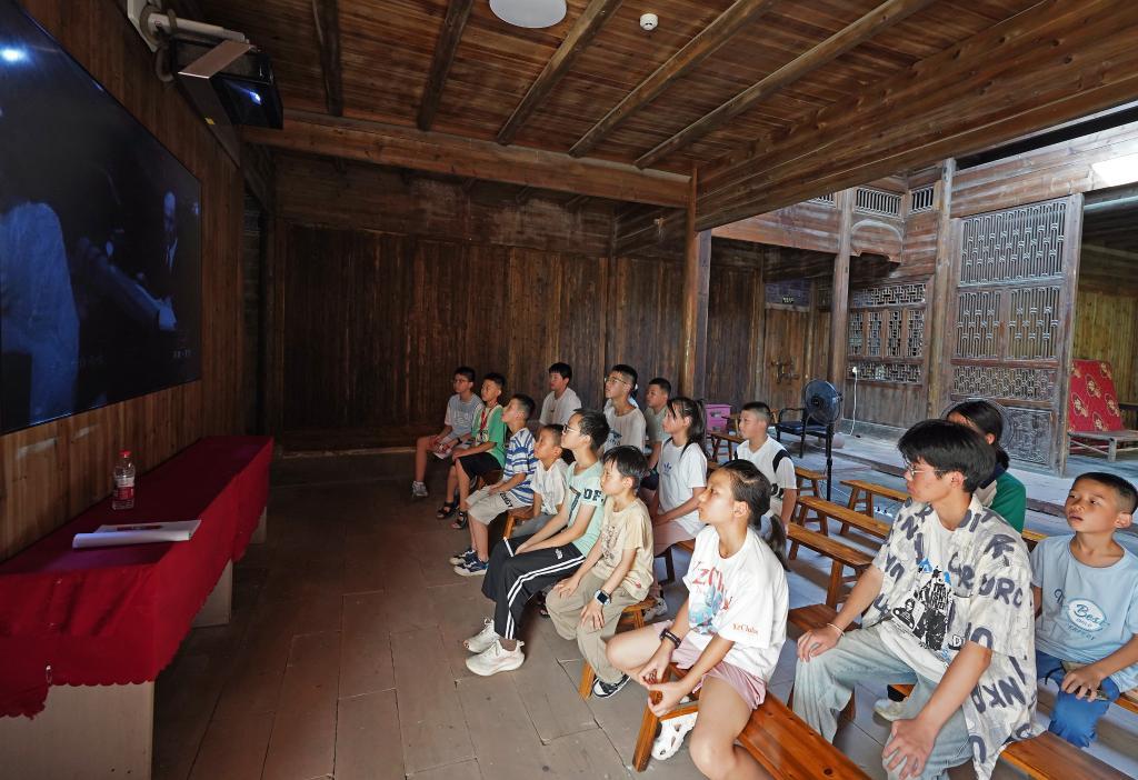 2025年8月1日,孩子們?cè)诿啡戥H故居觀看東京審判紀(jì)錄片。