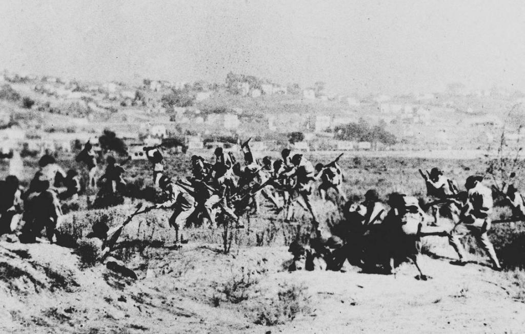1937年9月25日,八路軍第115師取得了平型關大捷。圖為八路軍115師戰士在平型關公路兩側伏擊日軍(資料照片)。
