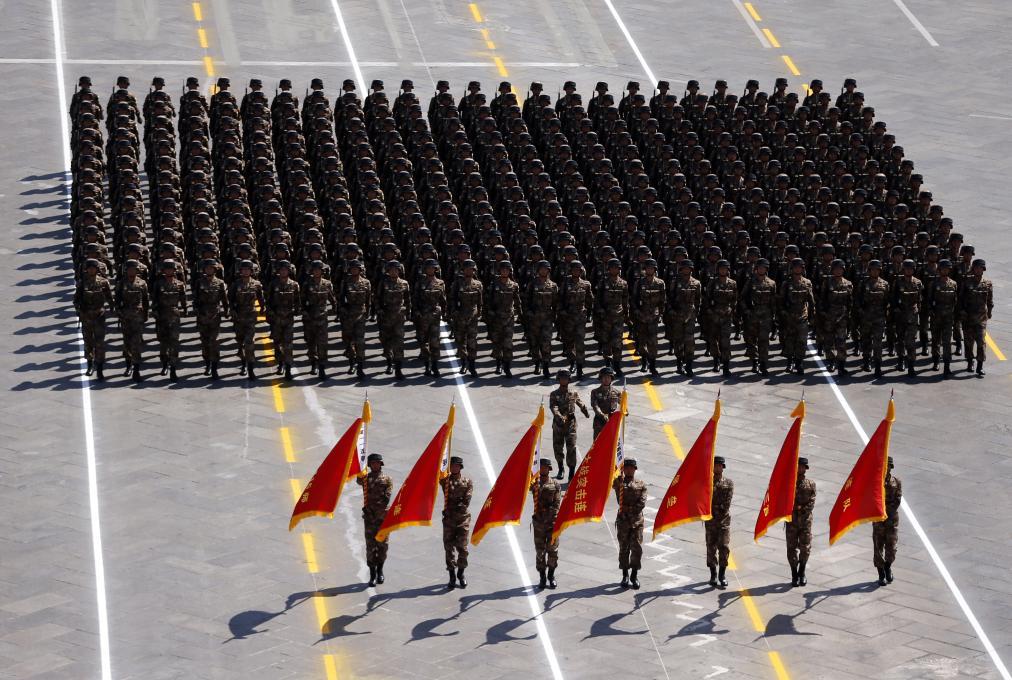 2015年9月3日,中國人民抗日戰爭暨世界反法西斯戰爭勝利70周年紀念大會在北京隆重舉行。這是“平型關大戰突擊連”英模部隊方隊接受檢閱。新華社記者 費茂華 攝