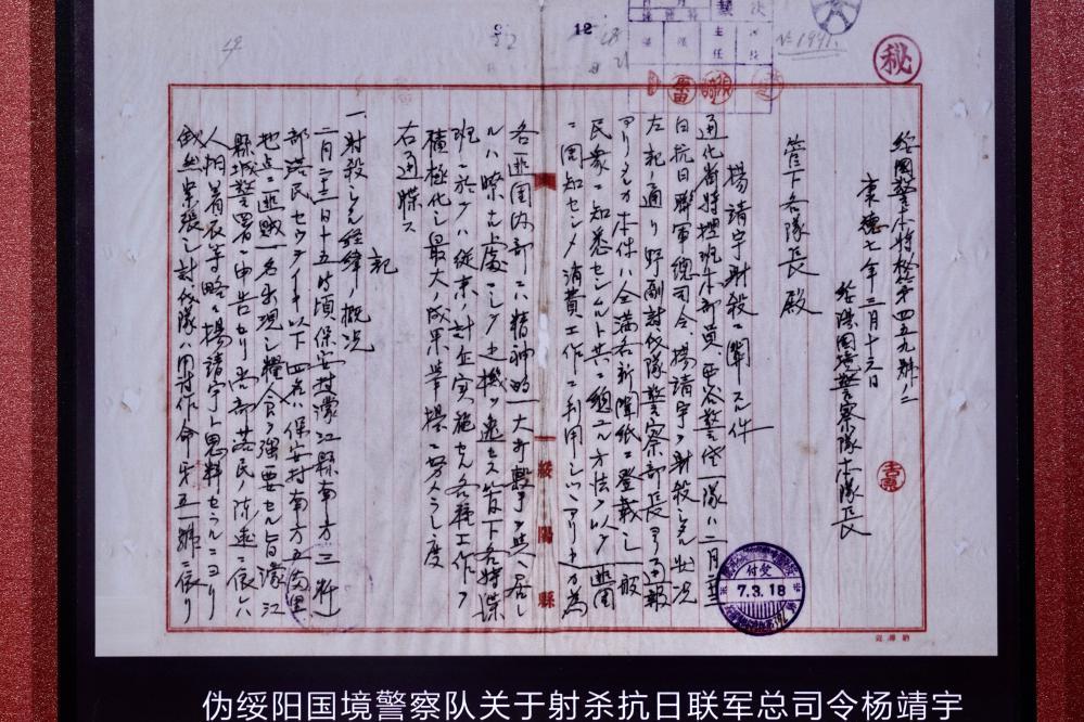 負責這份檔案翻譯的黑龍江省檔案館宣傳教育文化處一級主任科員趙倩說,這份標“秘”的內部通報是日偽軍警用來炫耀其所謂“戰果”的。“這暴露了日軍殘暴侵略的本性,也印證了楊靖宇將軍在東北抗聯和民眾心中的崇高地位。他的存在令侵略者膽寒。”