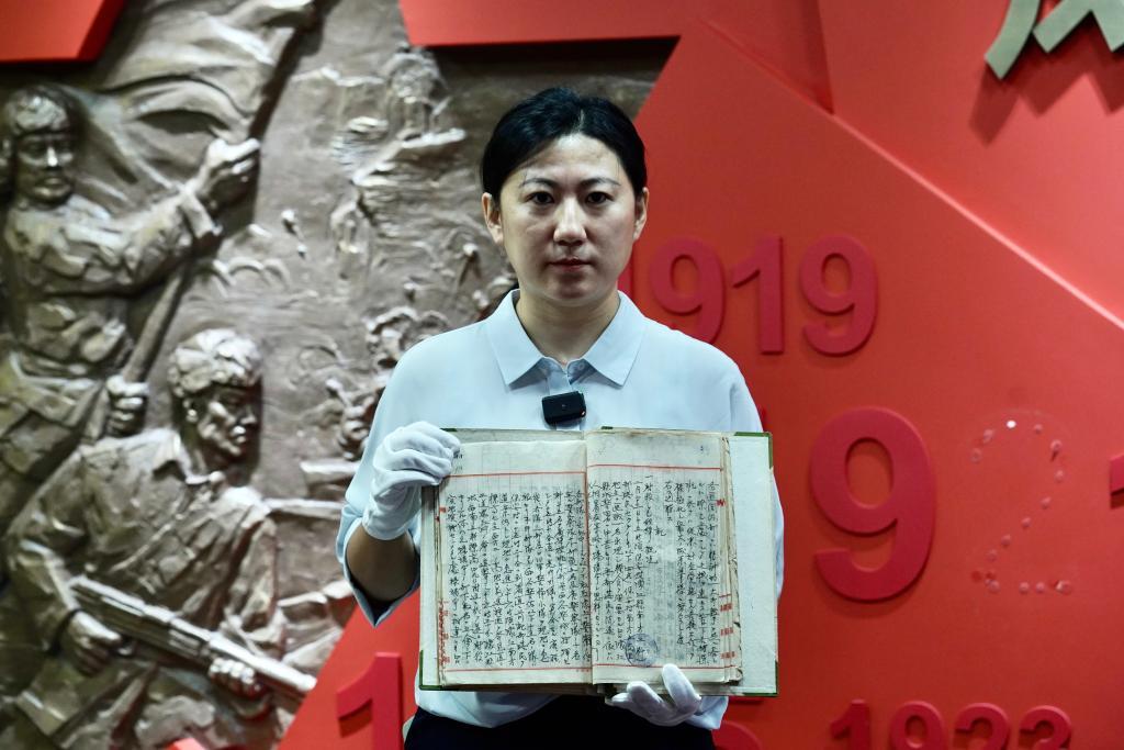 黑龍江省檔案館工作人員趙倩向記者介紹這份檔案。新華社記者 何山 攝