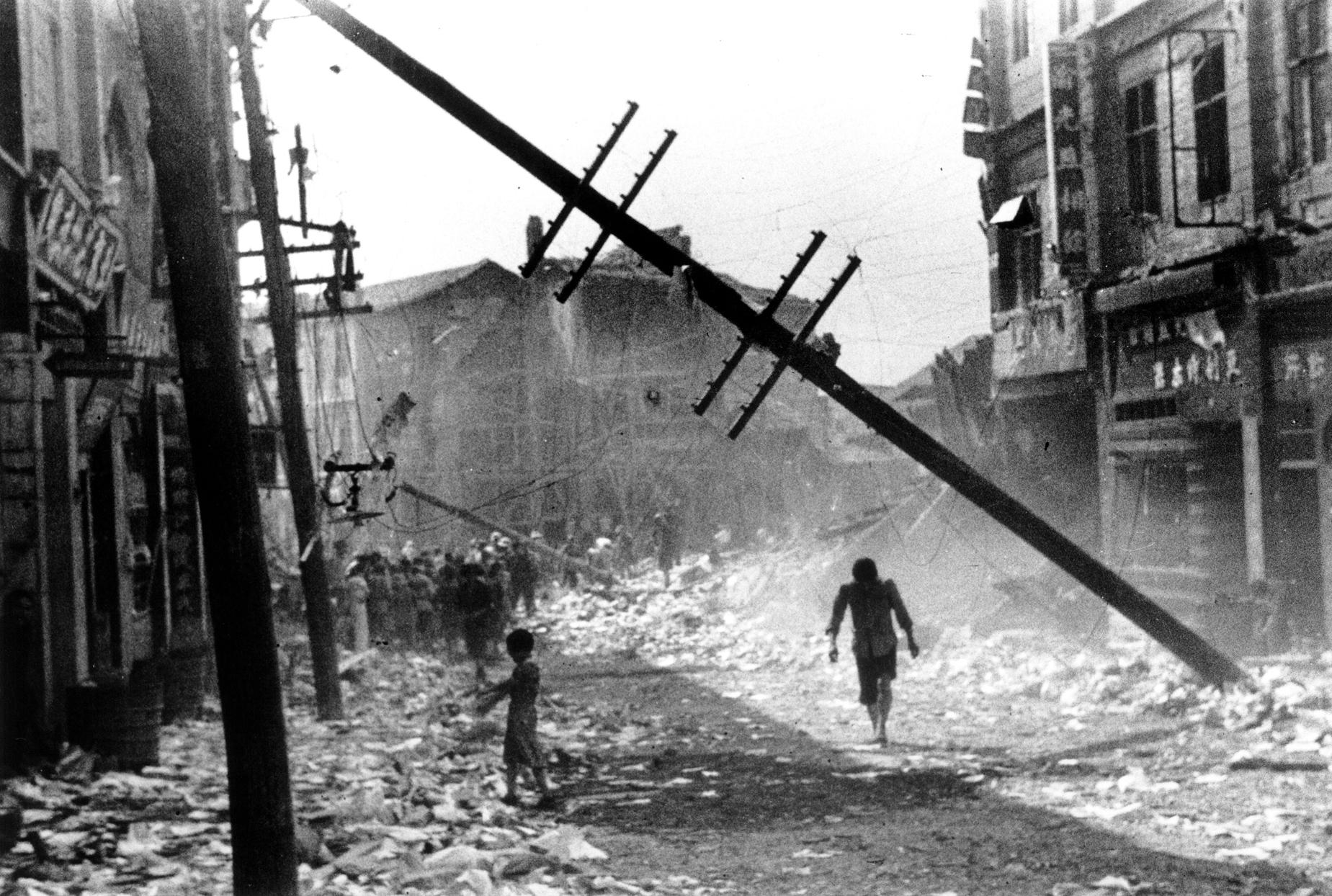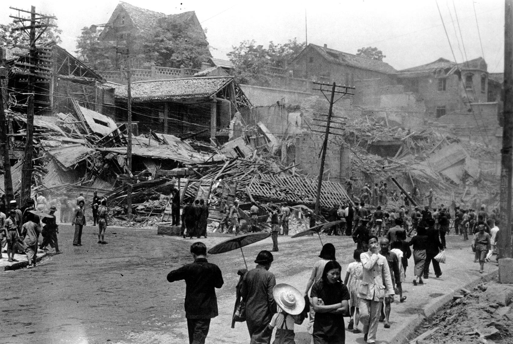 1941年8月,日機轟炸重慶市區,原有的鬧區碎片滿地,形同廢墟。資料圖