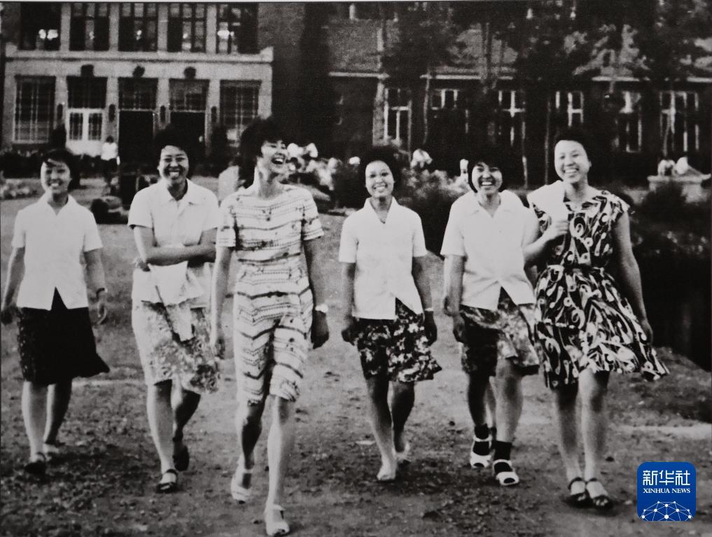 1977級無線電工程系女生在圖書館前。