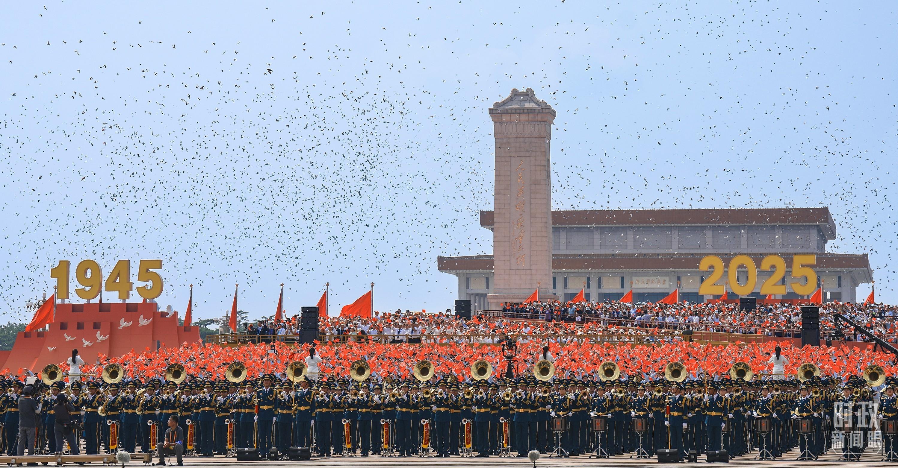 △紀念中國人民抗日戰爭暨世界反法西斯戰爭勝利80周年大會現場。(總臺記者李晉拍攝)