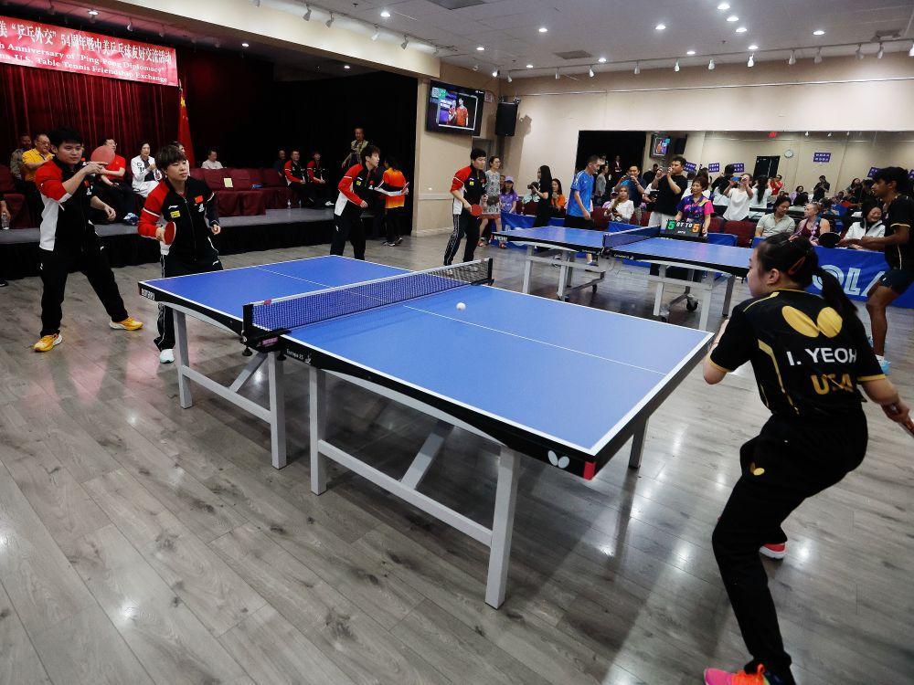 這是7月13日在美國內華達州拉斯維加斯拍攝的紀念中美“乒乓外交”54周年暨中美乒乓球友好交流活動現場。新華社發(邱晨攝)
