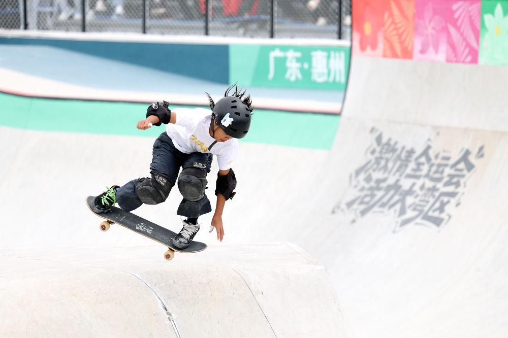 滑板賽場更是少年天下。當天決出的4枚金牌中的3枚被青少年選手獲得,摘得獎牌的12人中有9人尚未成年。當天年齡最小的冠軍產生在女子碗池,13歲的廣東選手鄒明珂以0.32分的微弱優勢反超12歲的山東選手孟令妍,拿下金牌。