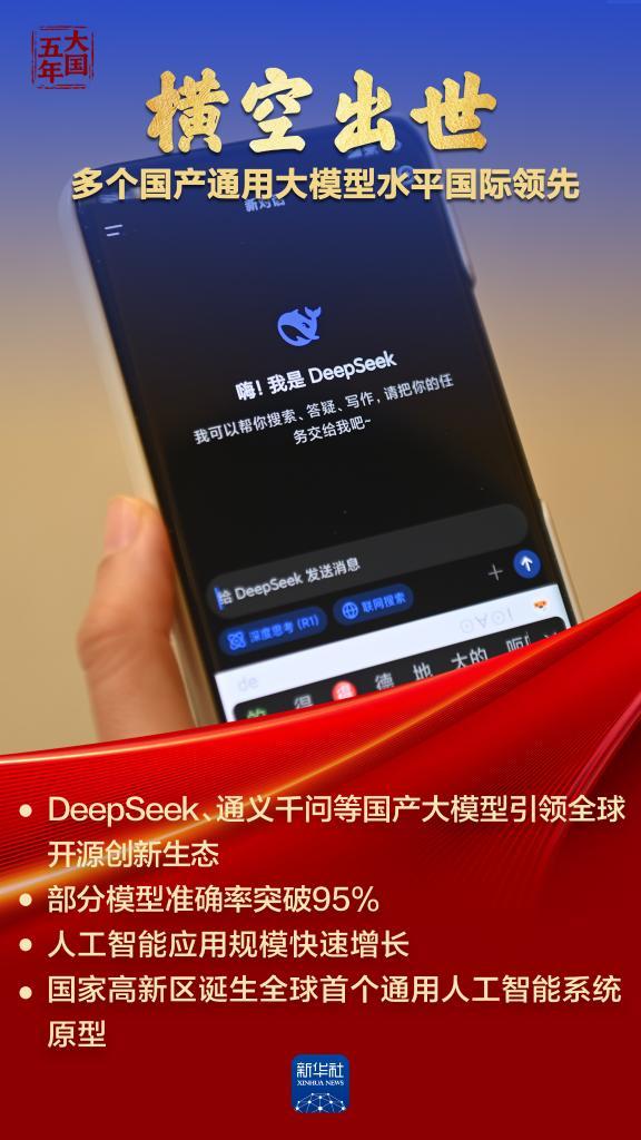 Deepseek橫空出世,中文大模型繁星競輝百花齊放;專利數量占全球六成,關鍵核心技術不再“缺芯少魂”;生成式人工智能用戶超過5億,AI飛入尋常百姓家……“十四五”期間,我國人工智能駛入快車道,實現了從“跟跑”“并跑”到多個領域“領跑”的歷史性跨越。