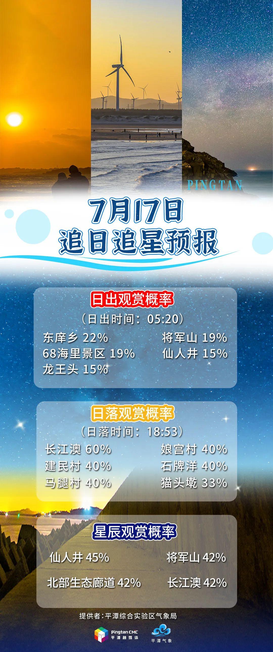 追日追星預報丨7月17日,“追日”概率長江澳60%,“追星”概率仙人井45%