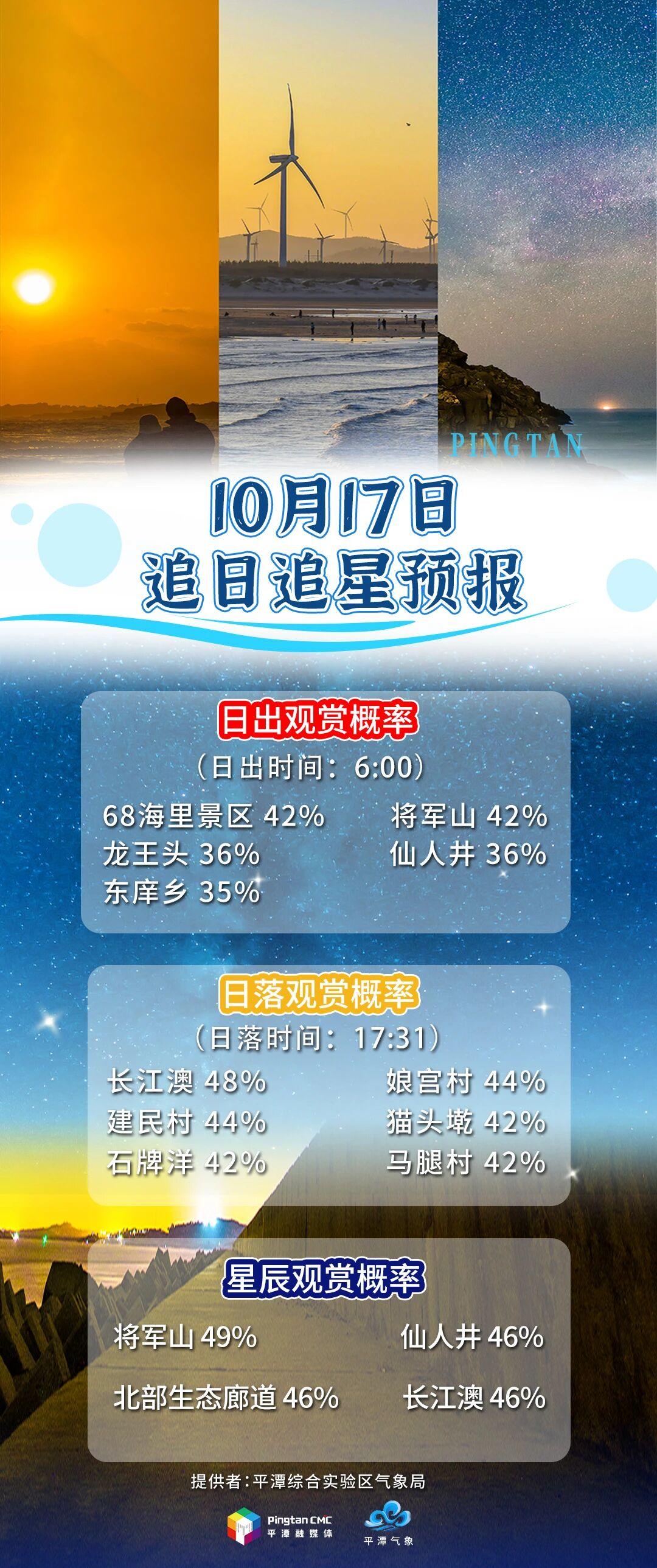 追日追星預報丨10月17日,“追星”概率將軍山49%,“追日”概率長江澳48%