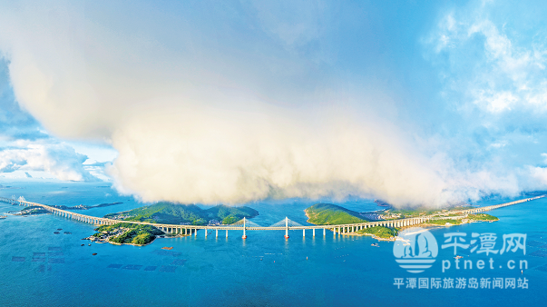 真正讓柯小玲意識到平潭天氣的魅力,是對平潭海峽公鐵大橋的一次偶然拍攝。今年9月,她和攝影愛好者們一起驅車前往有“福建版麥理浩徑”之稱的大練島,剛放飛航拍機,柯小玲只預料到會有輕霧,沒想到霧潮卻像戲劇特效般襲來。